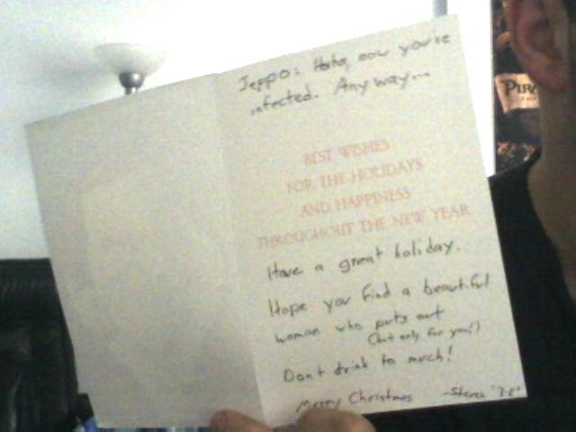 You ugly, malcontented little ingrate. I've sent you two cards, and received nothing in return, despite your year-old claims that I would.